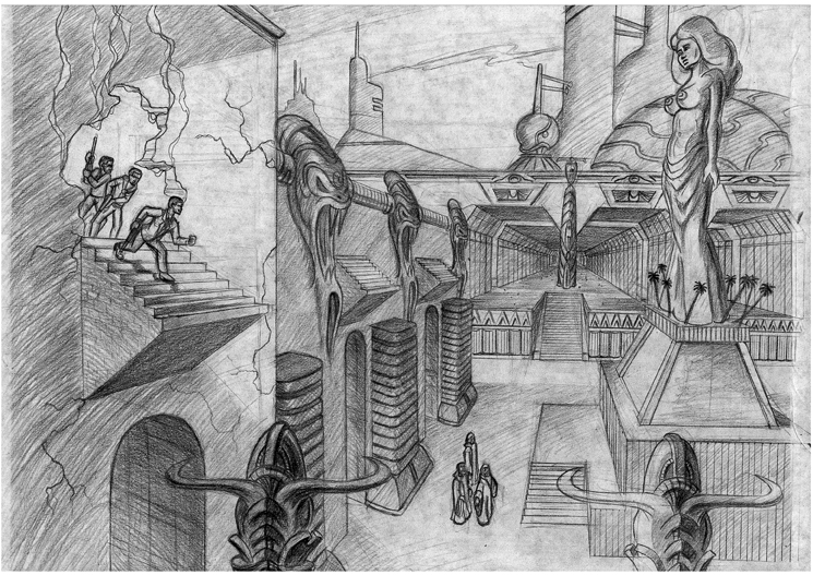 Mummy Daddyo contemplates the Sphinx – dev art from Kustomonsters 2 by Craig Clark